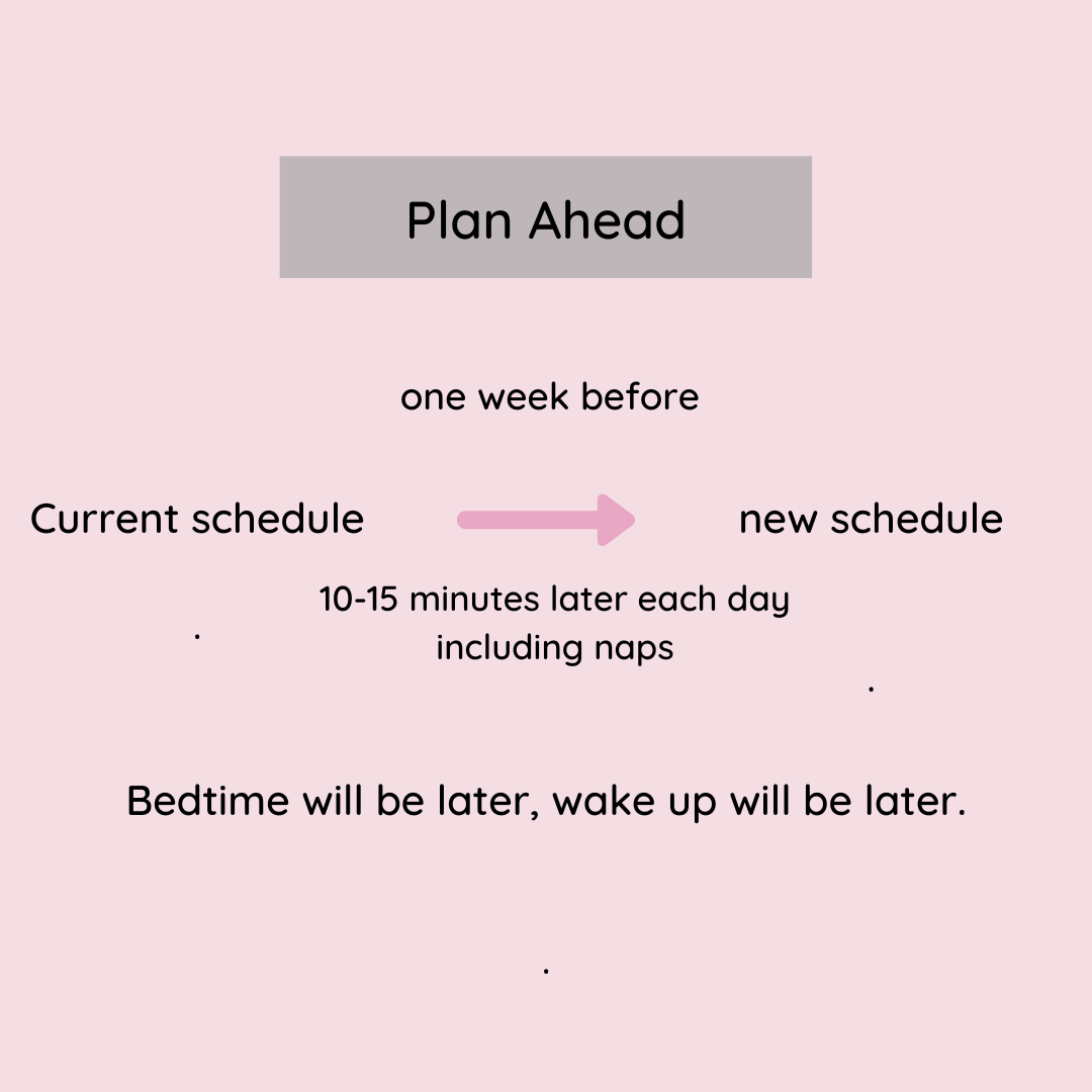 Plan ahead: One week before the time change, start adjusting slowly.